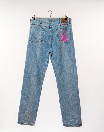 Perfect for any style, this unique denim blends timeless artistry with modern fashion.