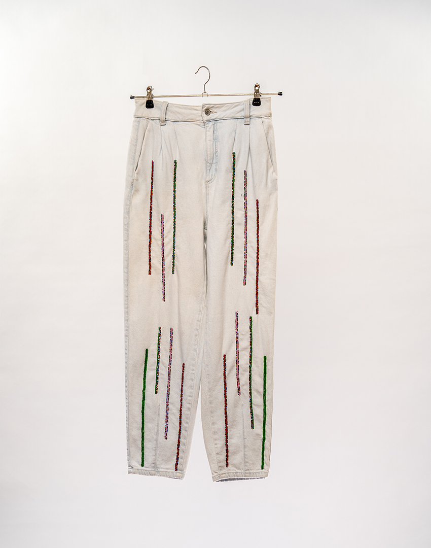 Curated with care, these denim are revitalized with intricate beadwork, giving them a fresh, unique look.
