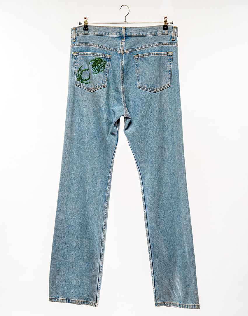 Timeless style with our hand beaded mid-wash blue denim, crafted using traditional techniques. Unisex and curated for a new life embrace the essence of artisanal craftsmanship.