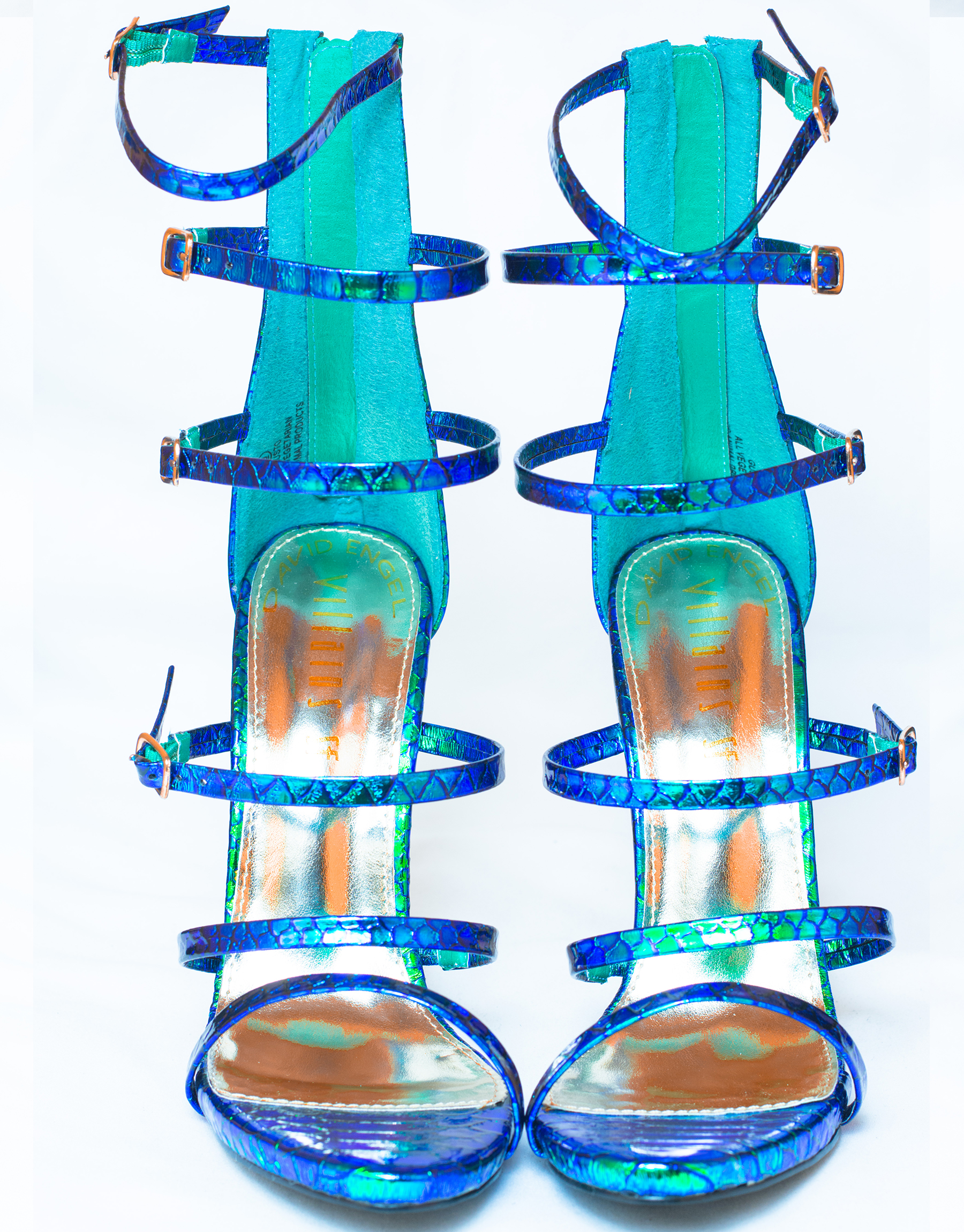 Our brand offers pumps, platforms, sling backs, peep-toes, & boots with various heel heights. This line caters to the boudoir, fetish, and sexy communities, as well as dancers and performers. Introducing the Multi-Coloured Chunky High Heels by David Engel. Crafted from lace, embroidered threads, and soft leather, these vibrant shoes (sizes 40 and 41) are perfect for making a bold statement.