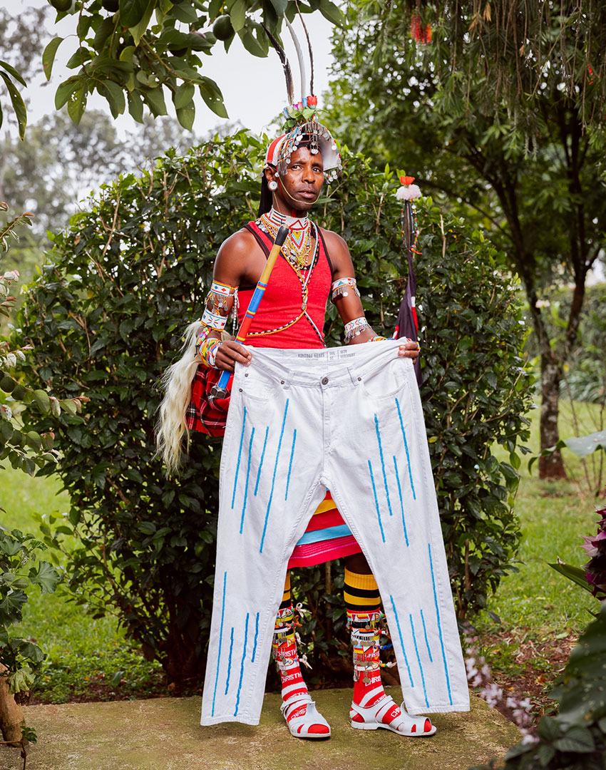 Our unisex mid-wash blue denim, traditionally hand- beaded by the Maasai and Turkana tribal women .